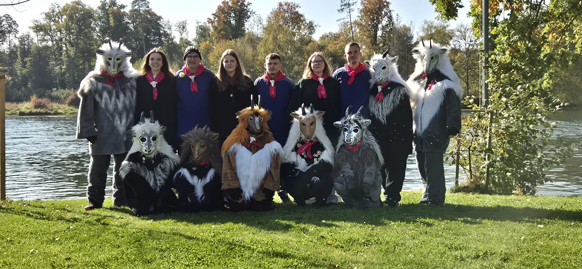 Die Masken und Zunftkleidung wurden damals von Frau Eva von Ow und Herr Manfred von Ow entworfen und genäht.